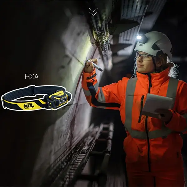 – il supporto SLOT ADAPT, fornito con la lampada, consente d’installarla facilmente su un casco professionale Petzl dotato di una fessura,
